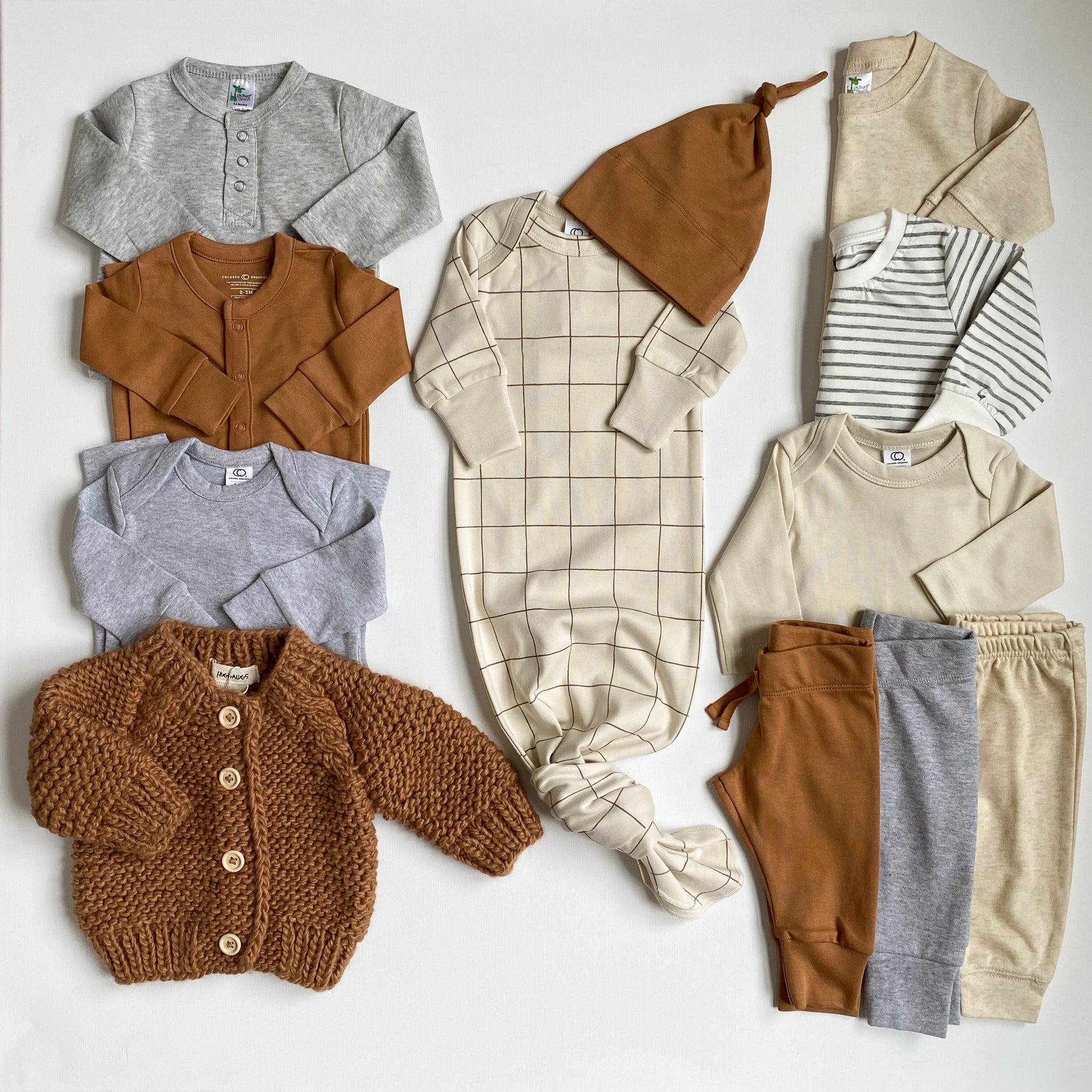 • Windowpane Infant Gown + Infant Cap in Ginger