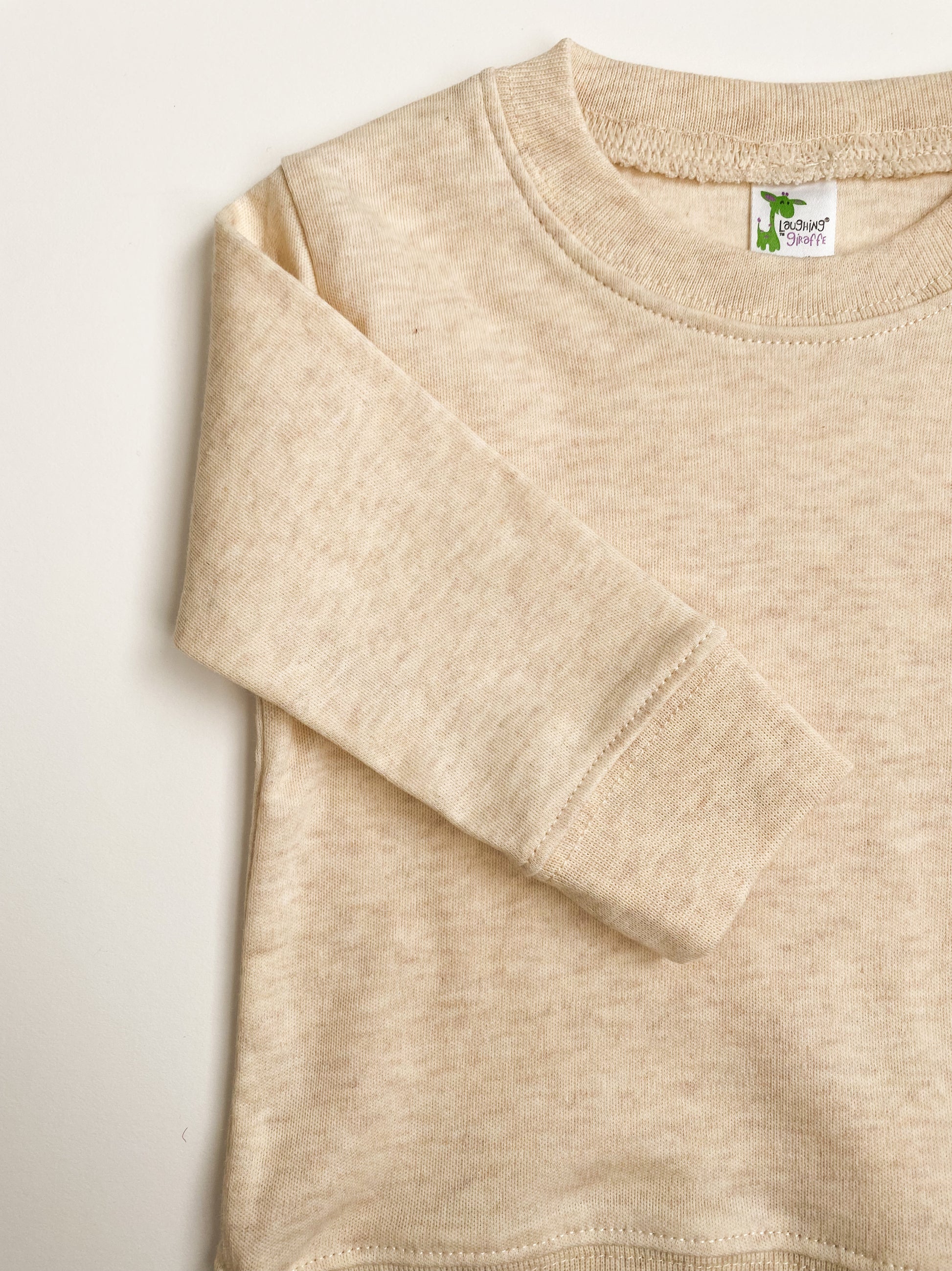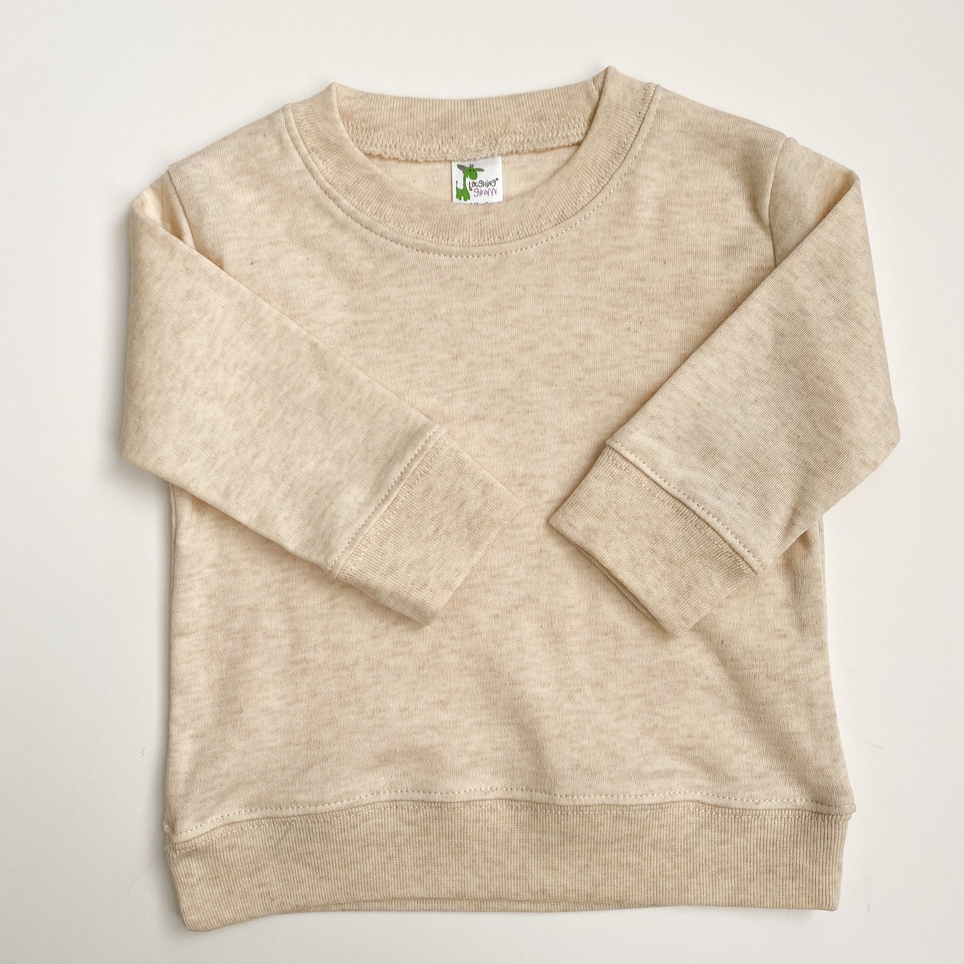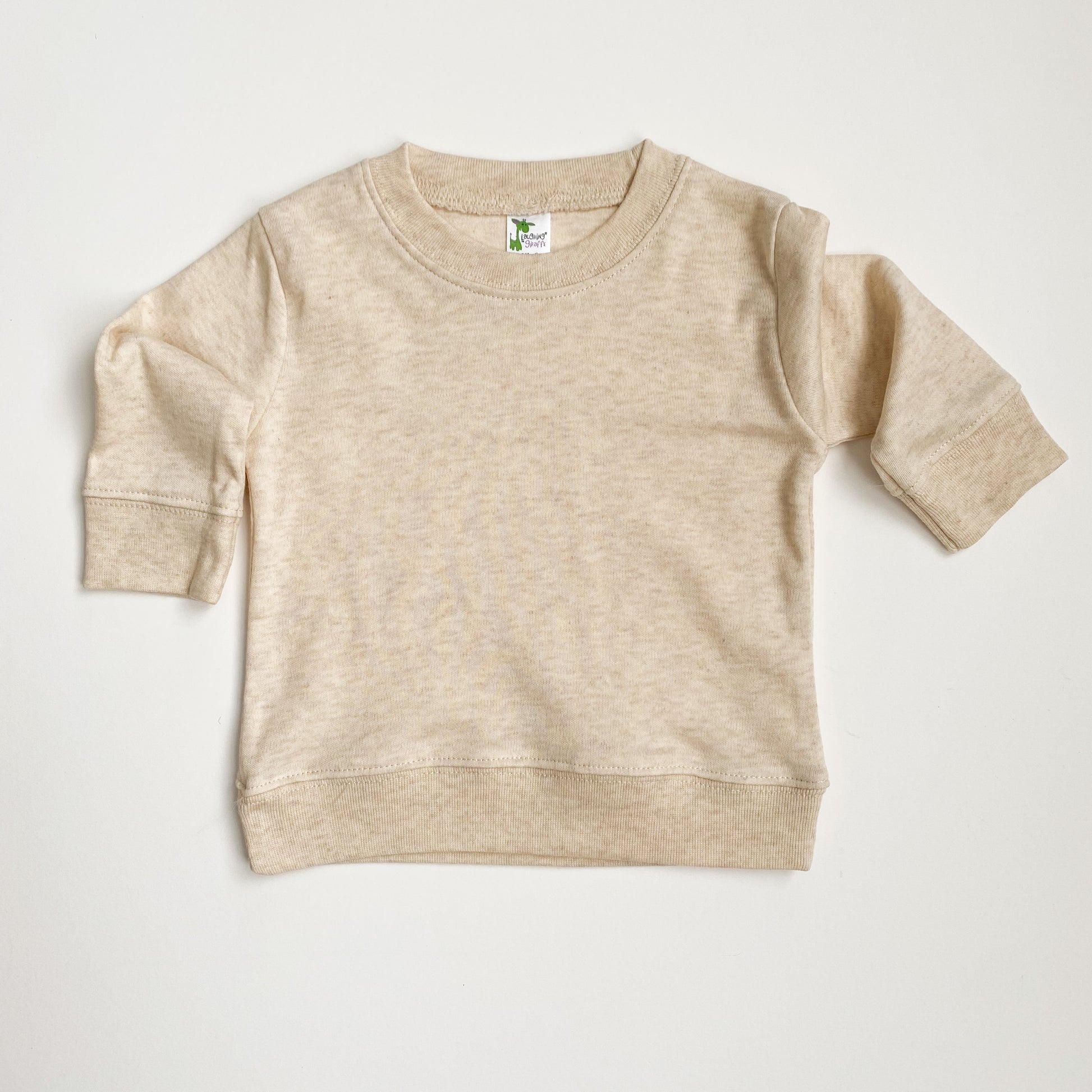 Super soft neutral pullover sweatshirt. This light natural color is easy to pair with just about any bottoms, making outfitting a breeze when getting your baby dressed in the morning. Nice and lightweight, it can be easily layered under heavier sweaters or hoodies if needed.