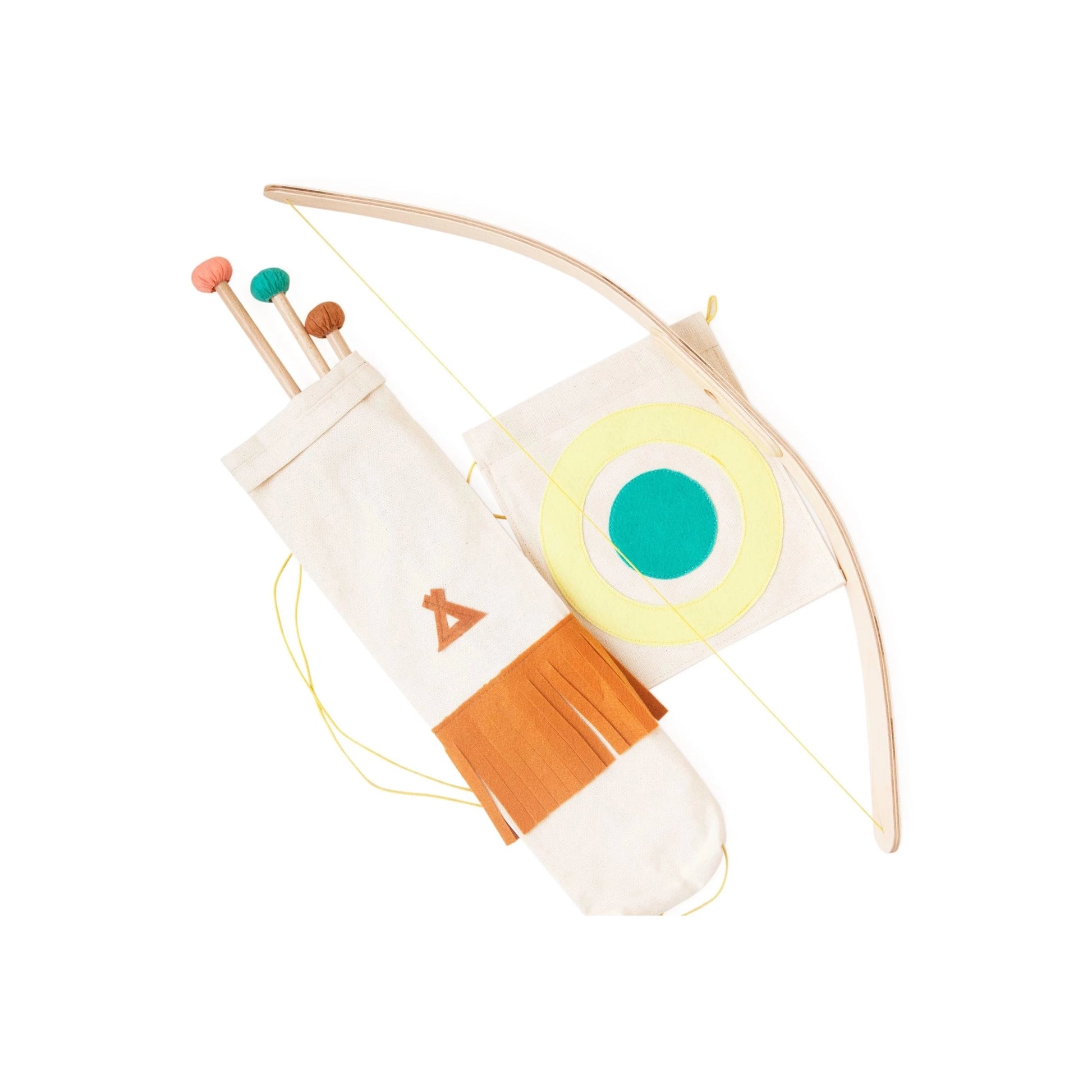 The ultimate toy for active kiddos. This bow and arrow set is beautifully designed. It comes with a wooden bow, a quiver, a target and three arrows. The arrows all have felt tips so no need to worry about getting hurt.