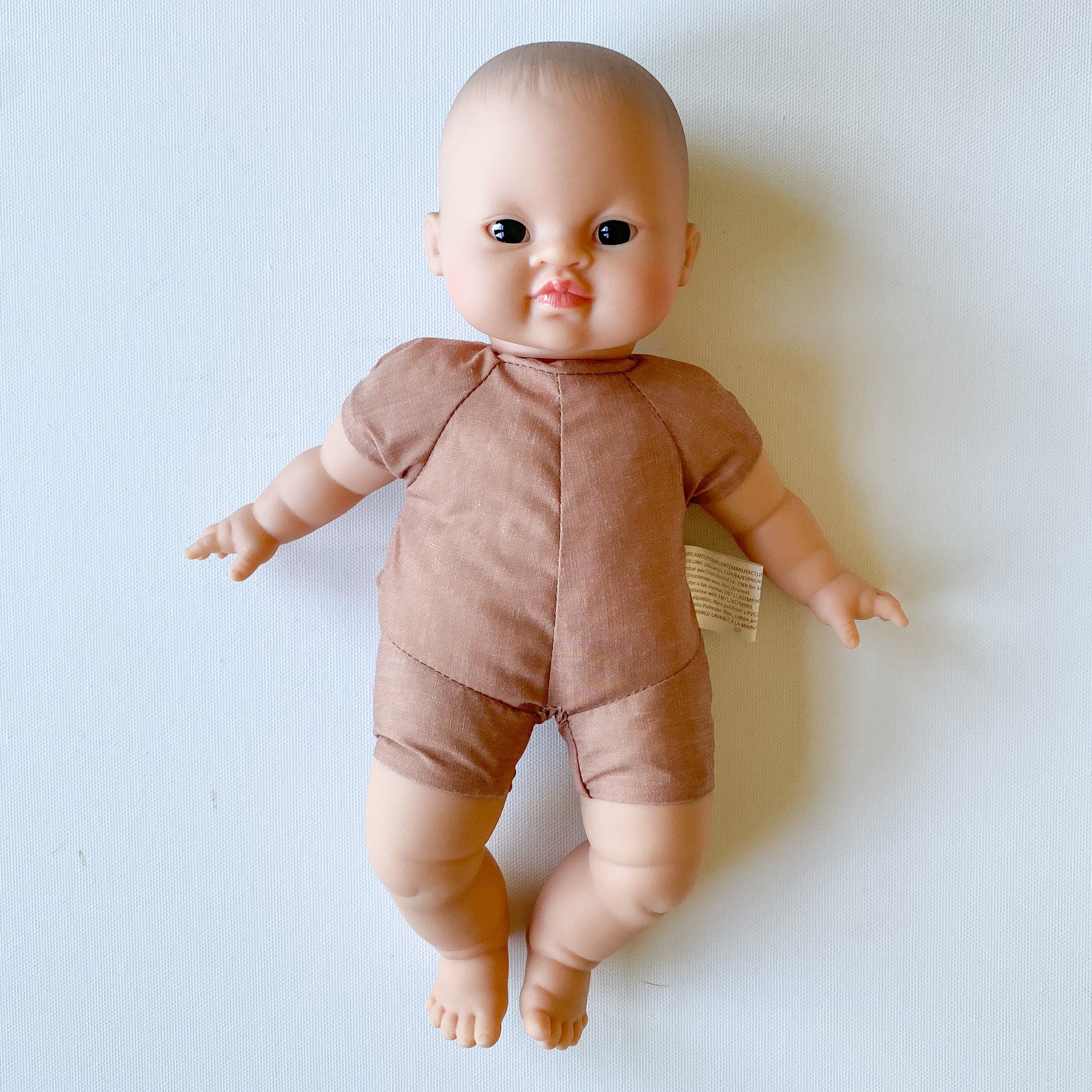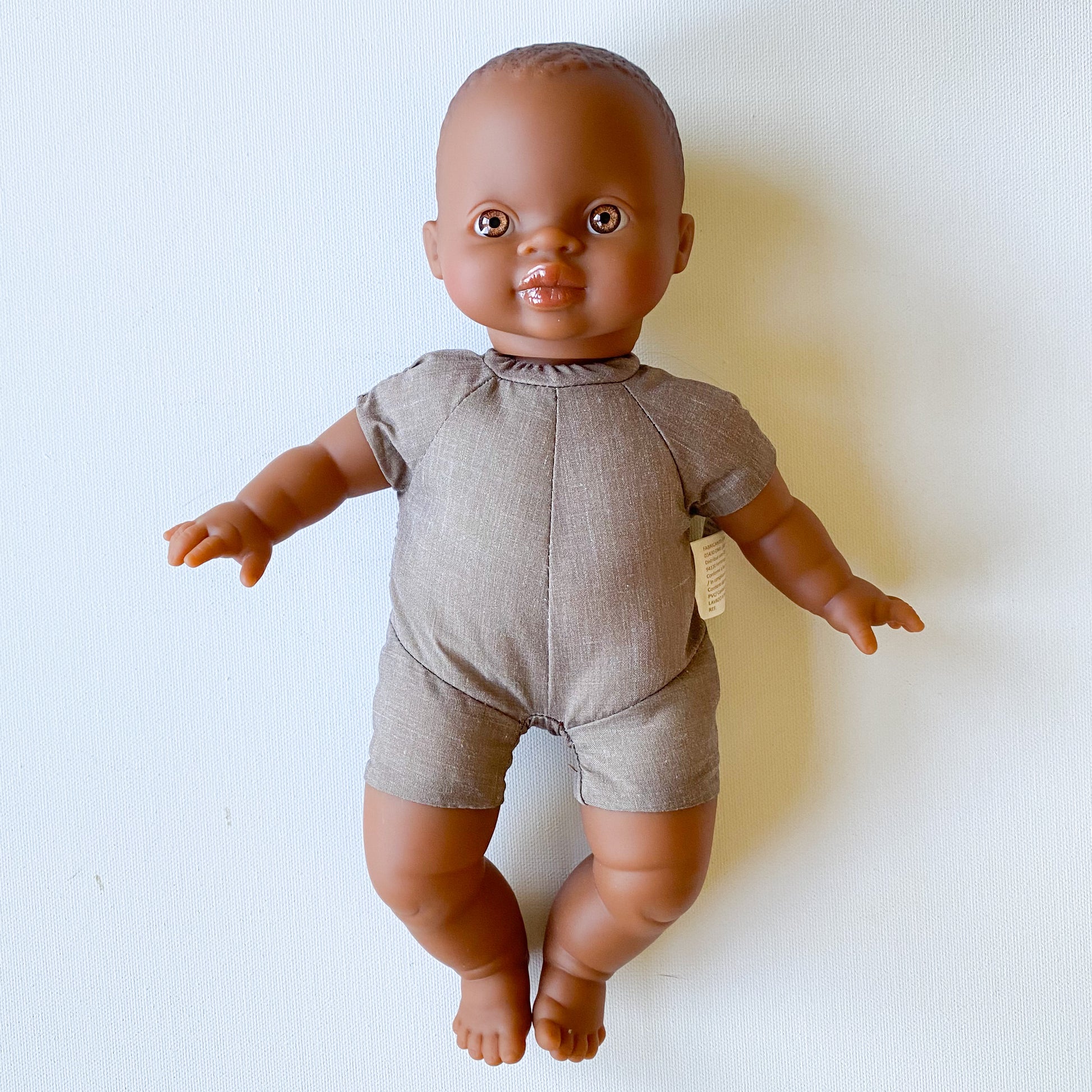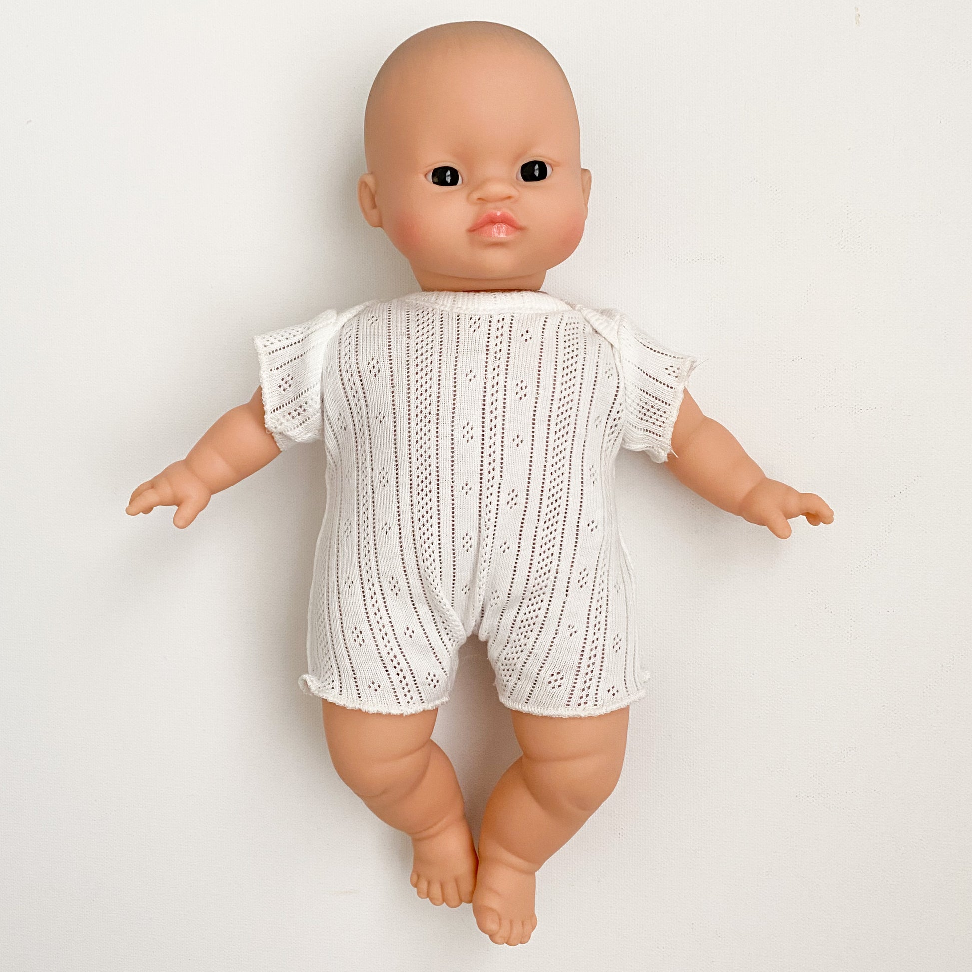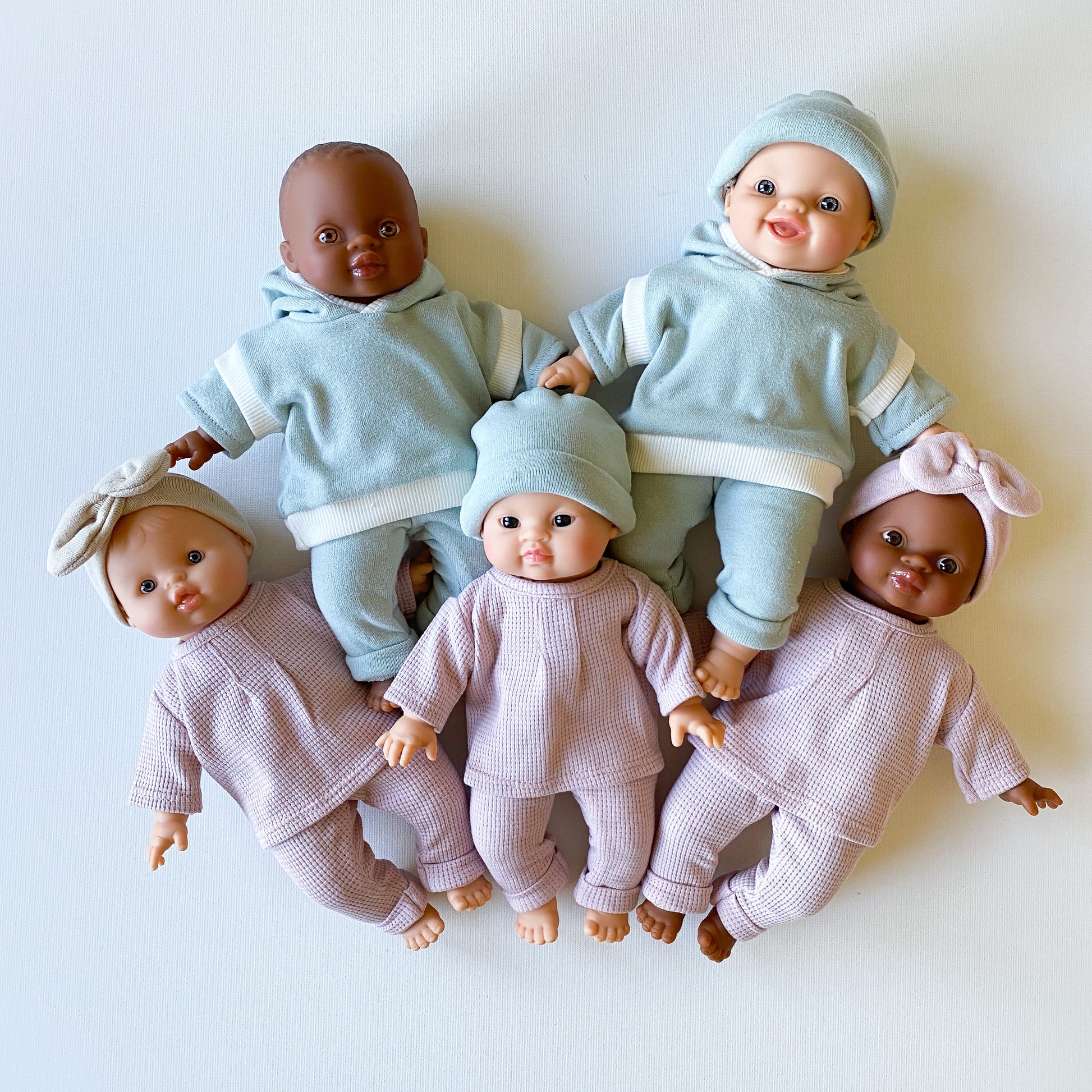 The most beautiful baby dolls you ever will see! These babies have the most adorable faces with exquisite details and soft plump bodies. The dolls are designed and manufactured in Spain. The doll clothing is designed and manufactured in France. The dolls have a light, delightful vanilla scent that makes them all the more cuddly. Dolls, clothing and accessories are sold separately so you can mix and match to your taste. Please select an outfit in addition to the doll if you want your doll to arrive with clothes. Shop our adorable wooden baby doll bottle here.