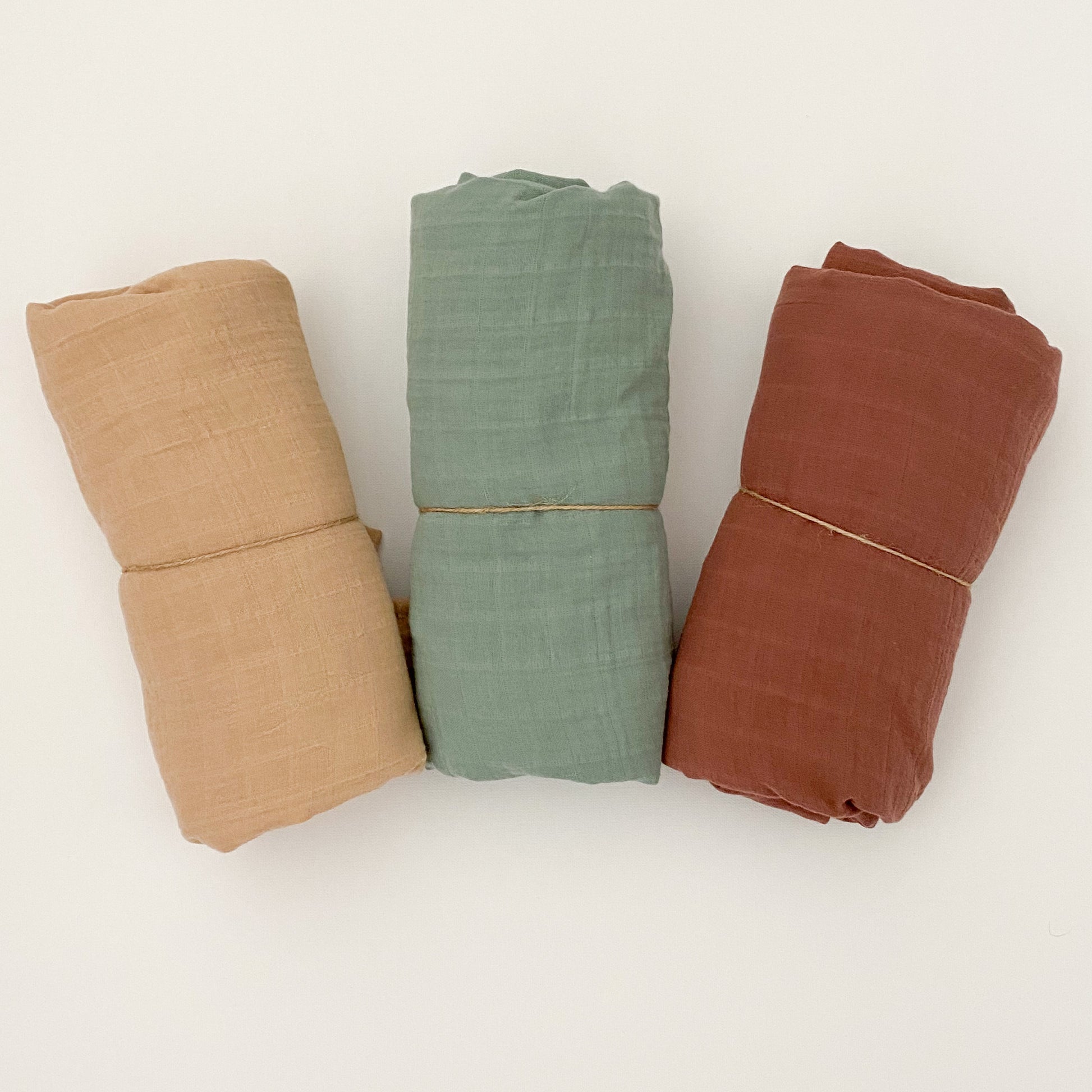 Beautiful organic cotton swaddles made in California. Made of 100% organic cotton, these swaddles are soft and breathable, perfect for wrapping your baby up or covering your toddler when they just need a light blanket. Pair these swaddles with our Newborn Gown for a perfect baby shower gift.