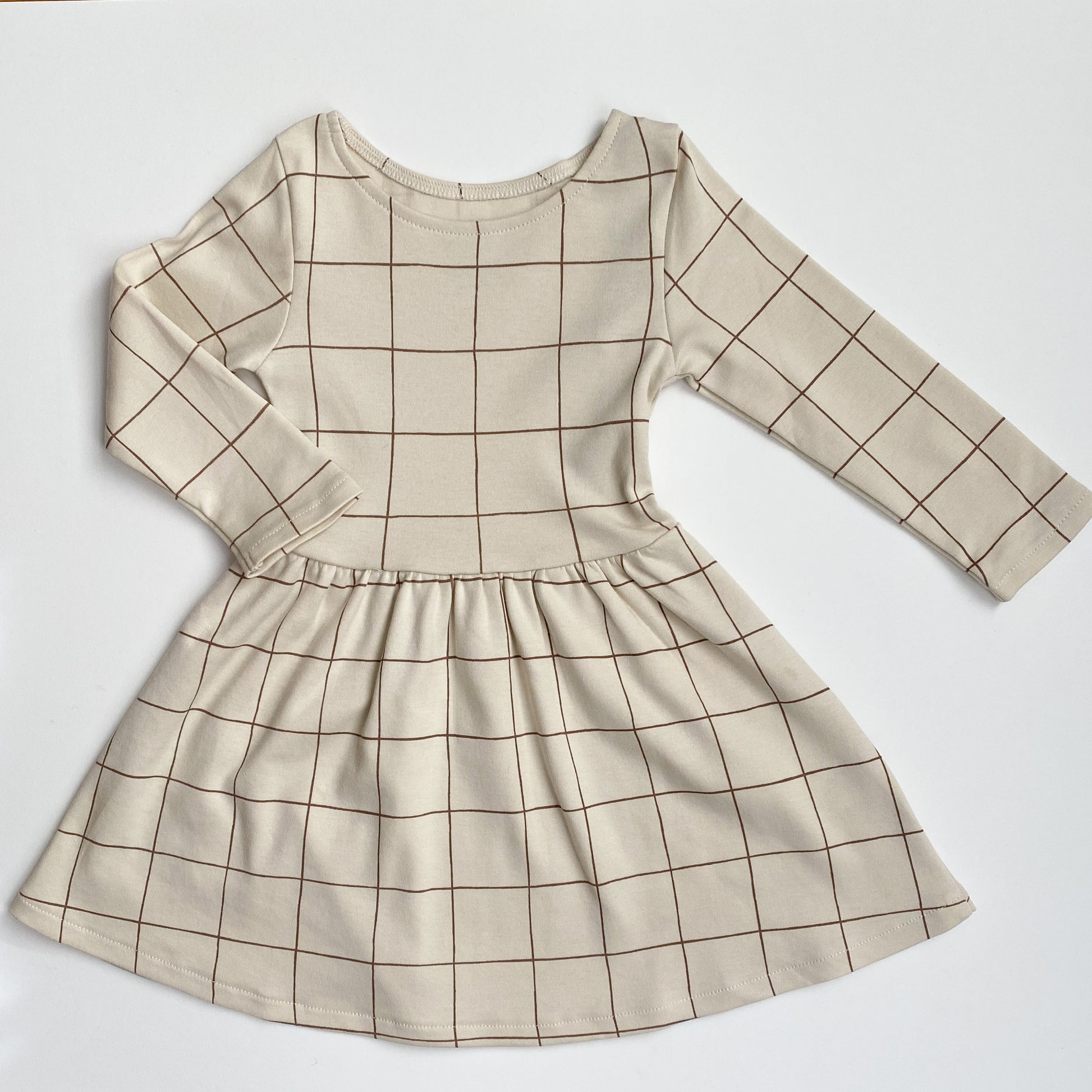 Classic fit and flair dress in a sweet windowpane print. This dress is made of 100% organic cotton making in breathable and wearable year round.