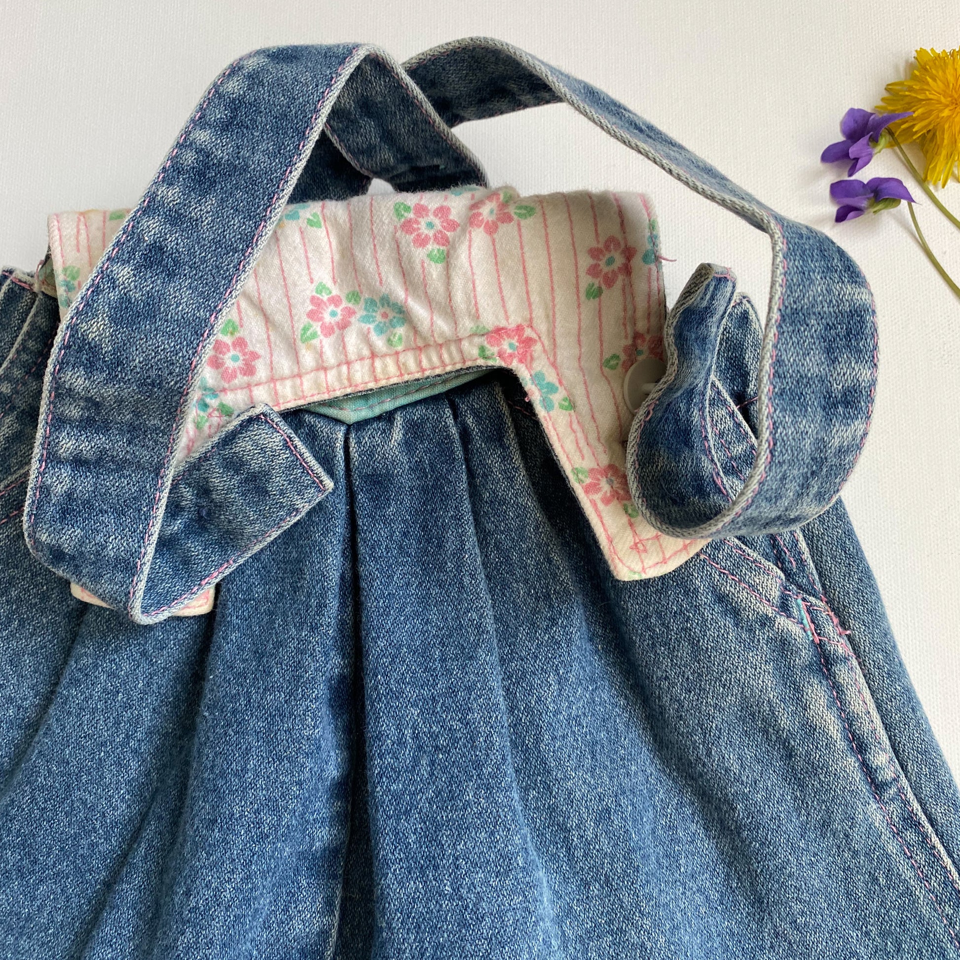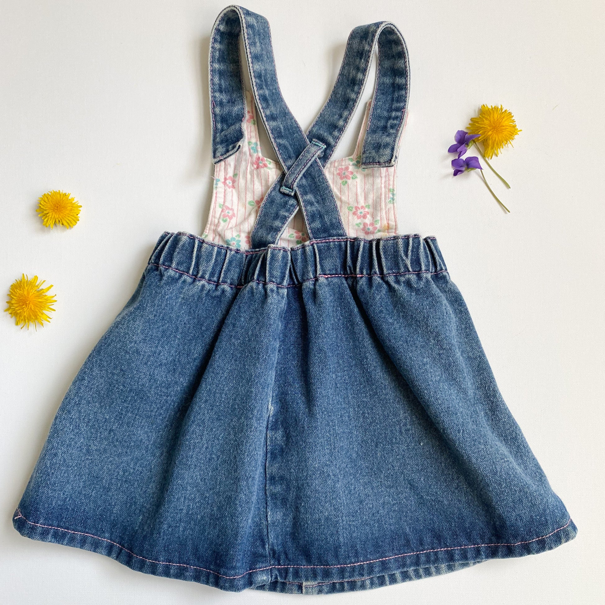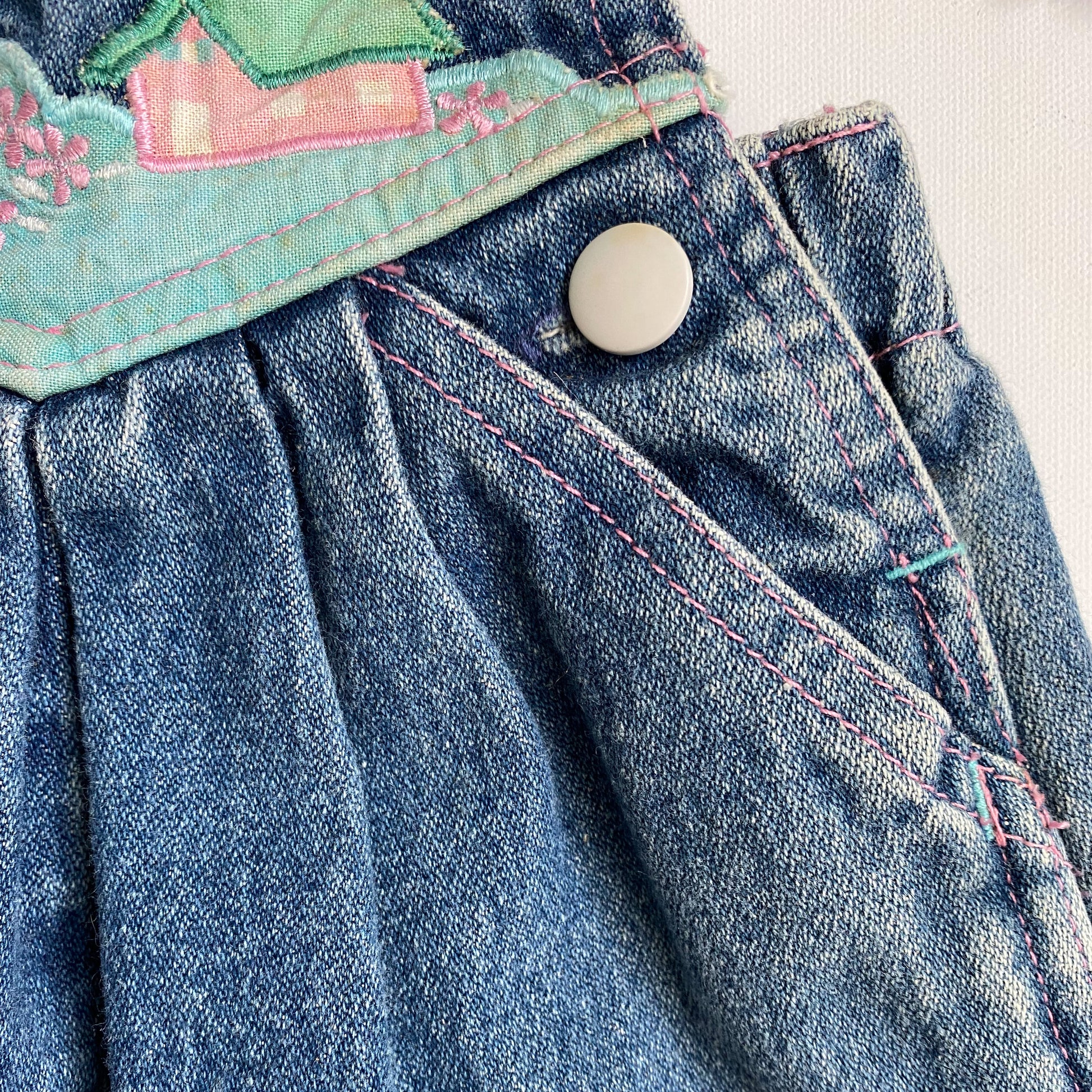 Vintage Denim Overall Dress with Embroidered Appliqué 18M