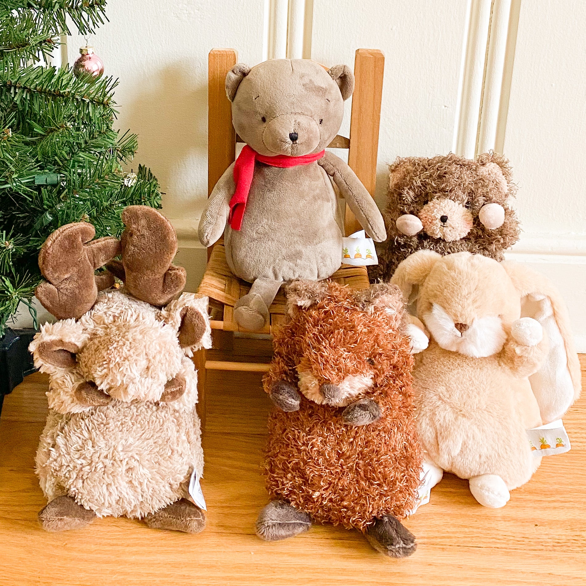 Come on, who wouldn’t love to hug this little guy? Wee Bruce the Moose has super soft fur in warm taupe with acorn brown velour antlers, ears and hooves. With a body that is just about as round as he is tall he is perfect for small hands to snuggle and hold.