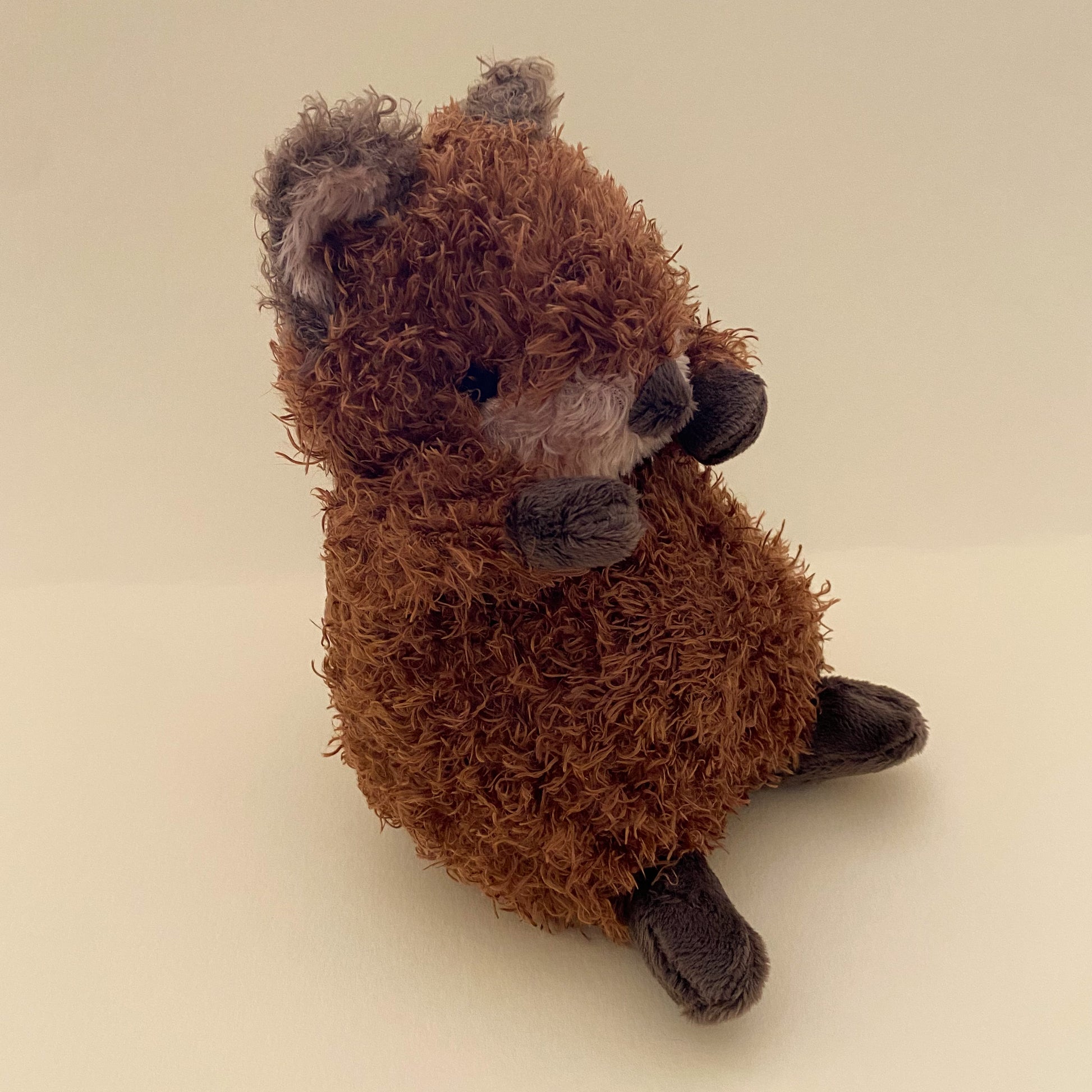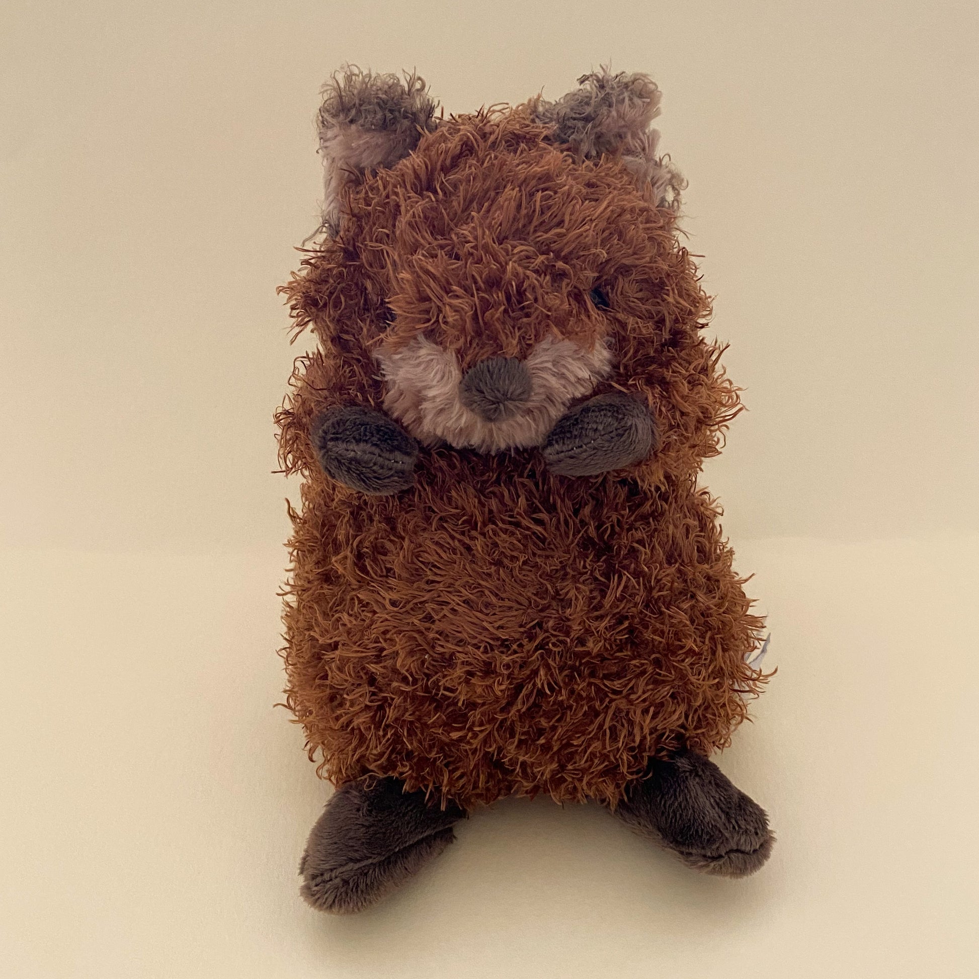 An adorably plump woodland Fox. Foxy has soft, fuzzy fur in rich auburn red, burnt cream, and chocolate brown. Embroidered features and velour nose.